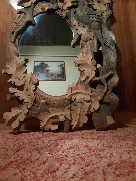 Különleges fából faragott fakerettel.