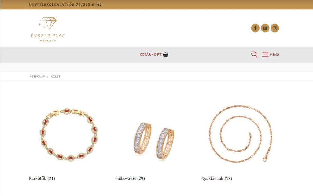 Webshop minta (ez egy élesben működő webshop): https://ekszerpiac.hu